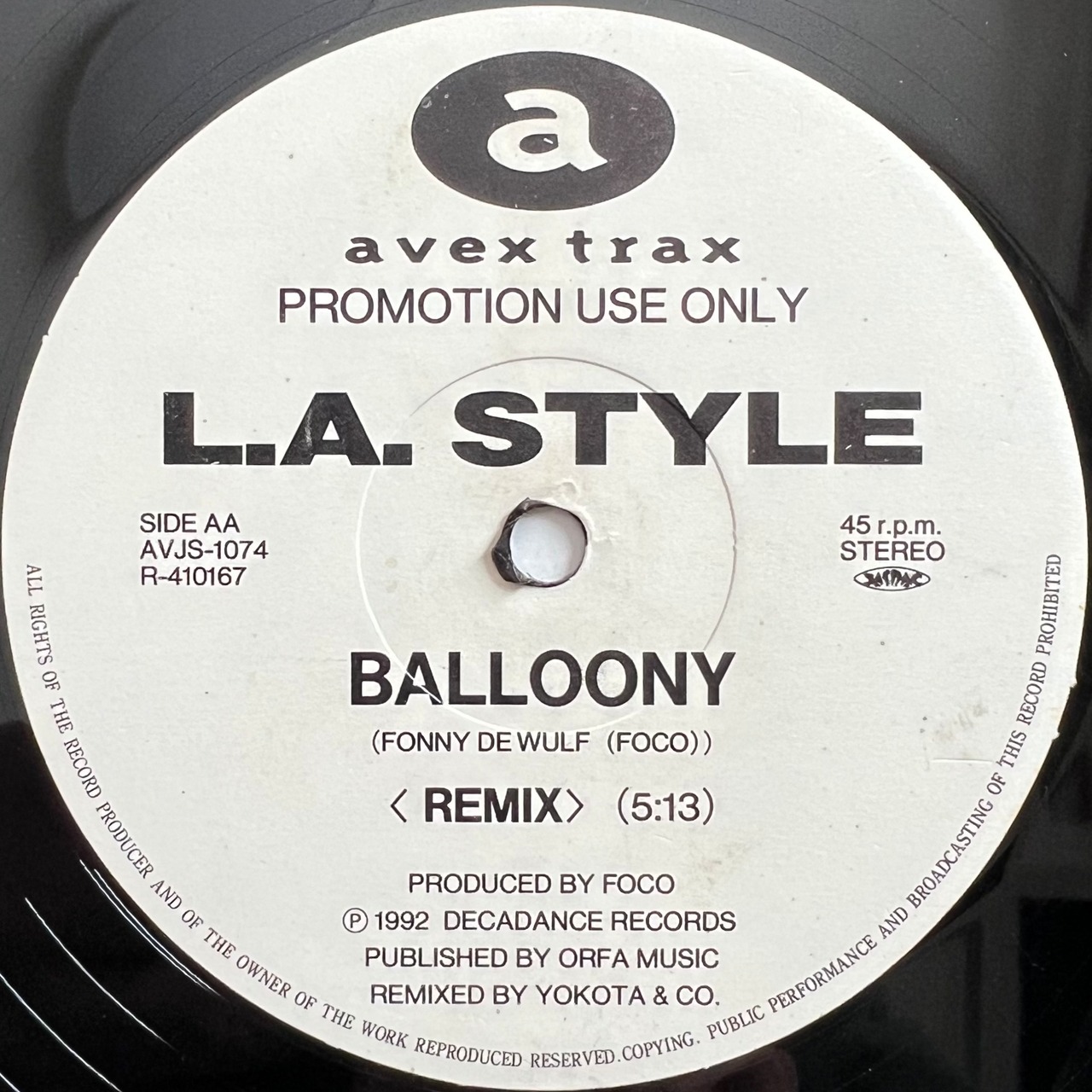 Avexによる国内プロモ盤としては入手困難な一枚で、初期ハードハウス~ハードコア期のL.A. Styleサウンドを体感できる貴重な12インチです。