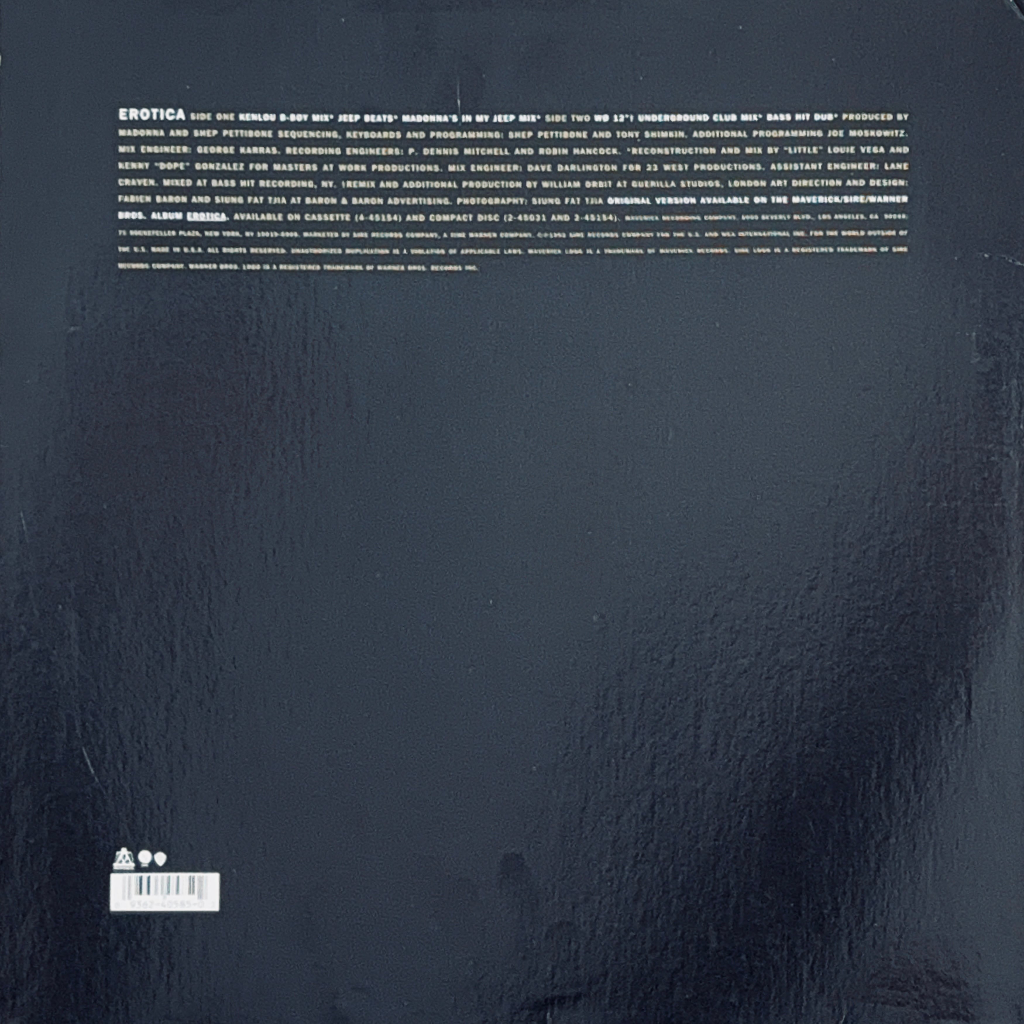 Madonna のキャリアでも特に実験性が高く、ハウス、ヒップホップ、トリップホップが混じり合った異色のダンス・クラシック「Erotica」のUS 12"。