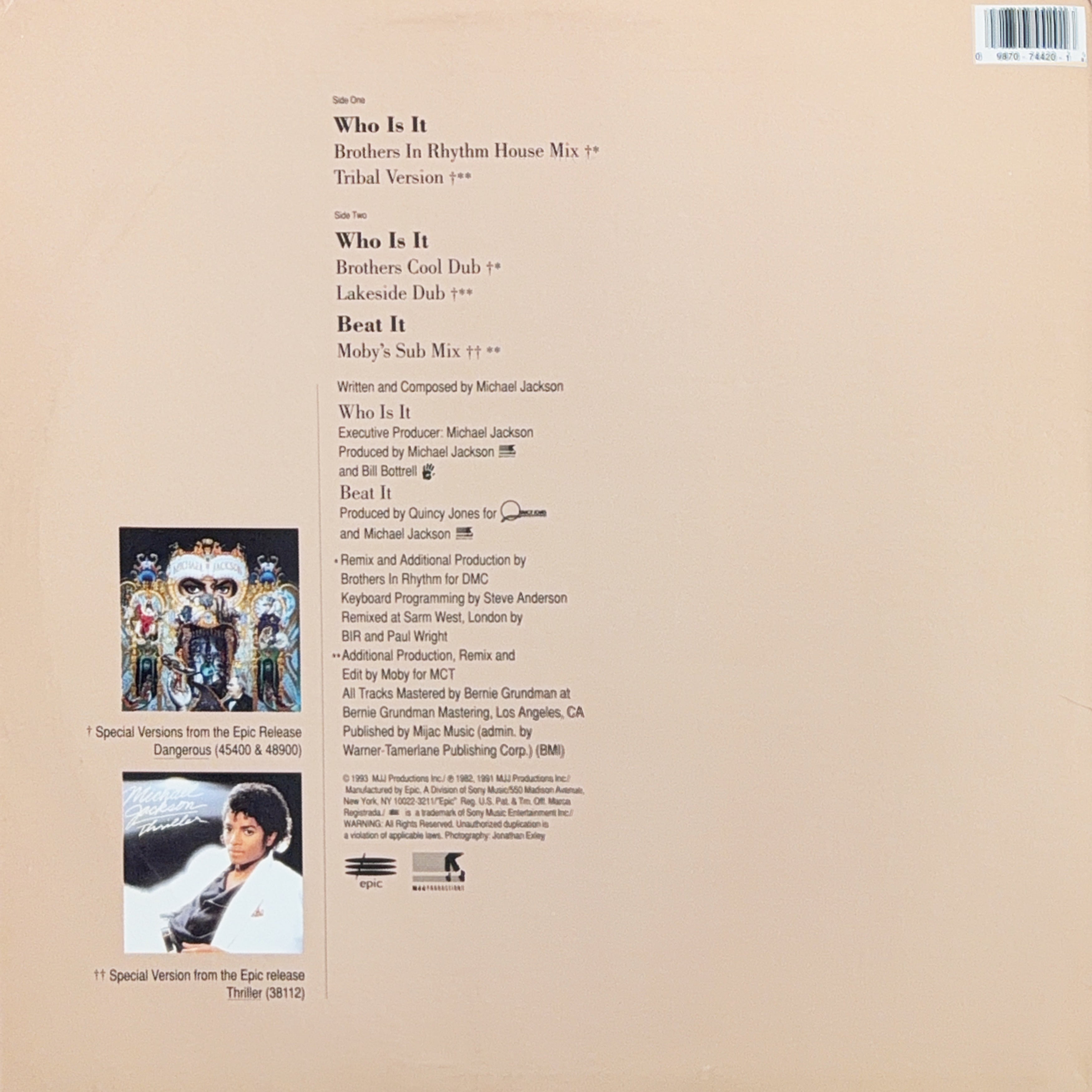 『Dangerous』からのシングル「Who Is It」を、当時のハウスシーンを席巻していた Brothers In Rhythm が大胆にリミックスした12インチ限定盤。原曲の持つ緊張感やダークなムードを、クラブ仕様の壮大なサウンドスケープへと再構築した一枚です。