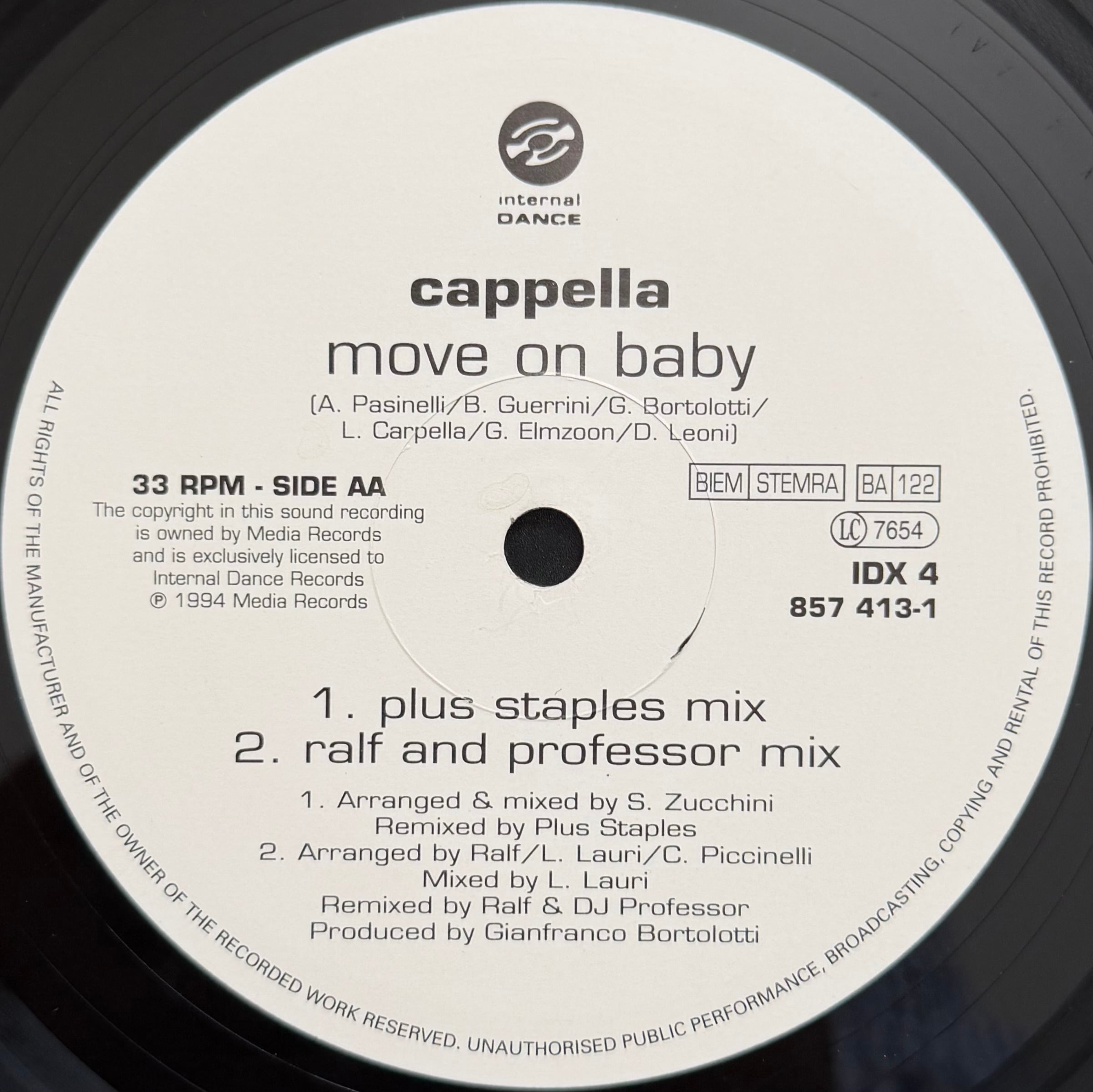 Cappella の1994年ヒット “Move On Baby” を収録した12インチシングル。
