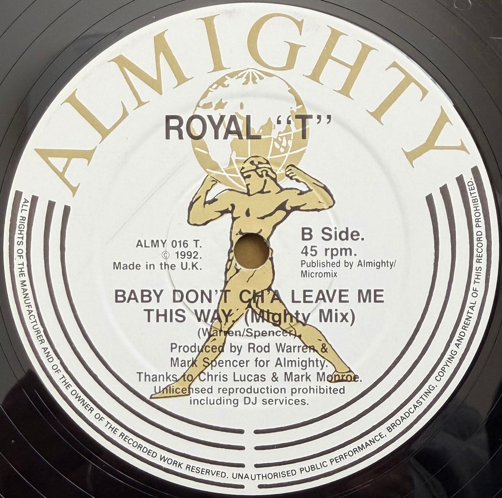 [1992] Royal "T" – Baby Don't Ch'a Leave Me This Way [Almighty Records][在庫B]