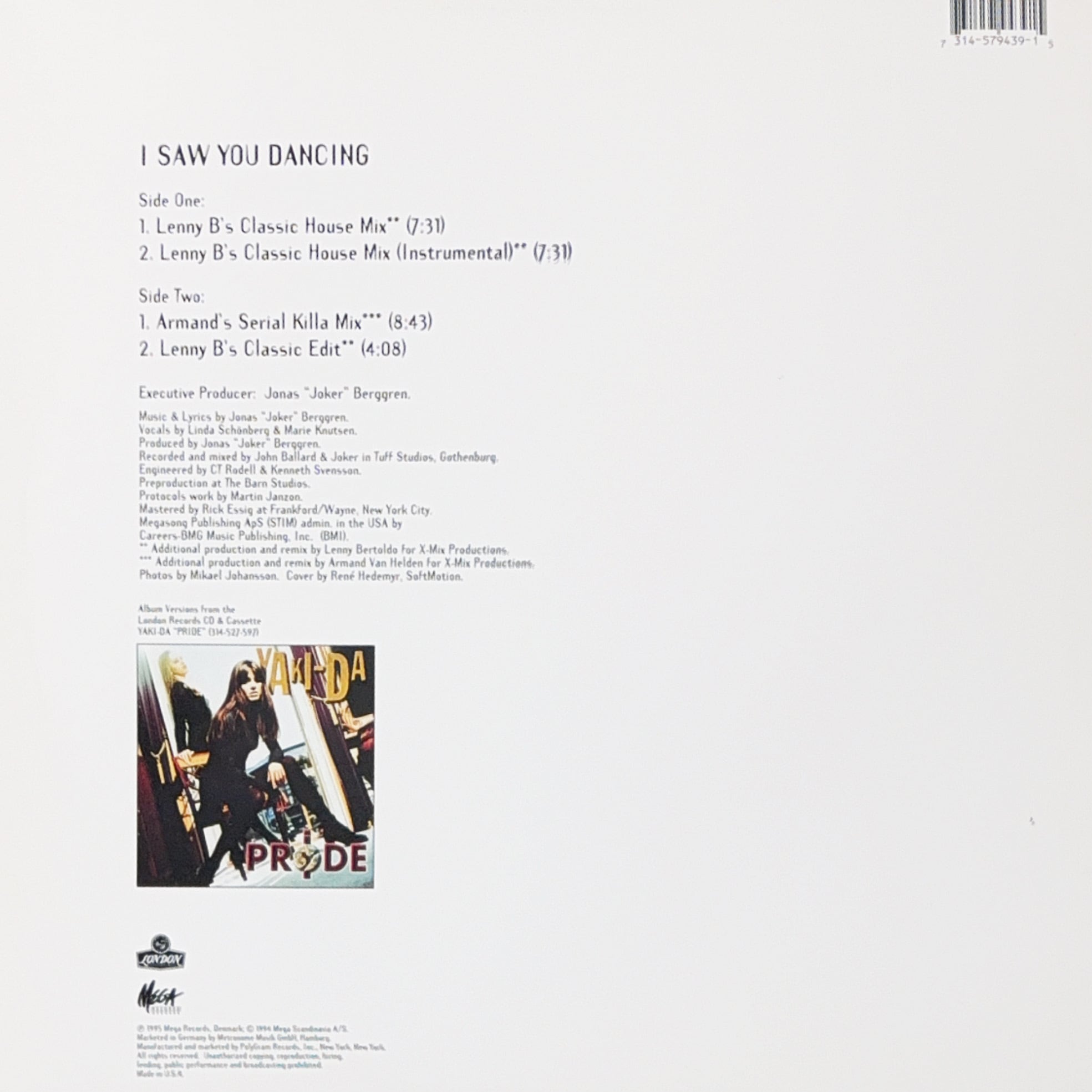 スウェーデン発のポップ・デュオYaki-Daによるヒット曲「I Saw You Dancing」を、USクラブ・シーン向けに再構築したハウス・リミックス12インチ。オリジナルはユーロ・ポップ色の強い楽曲ですが、本作ではFFRRらしい洗練されたクラブ・アプローチが施され、90年代半ばのハウス文脈にしっかりとフィットしています。