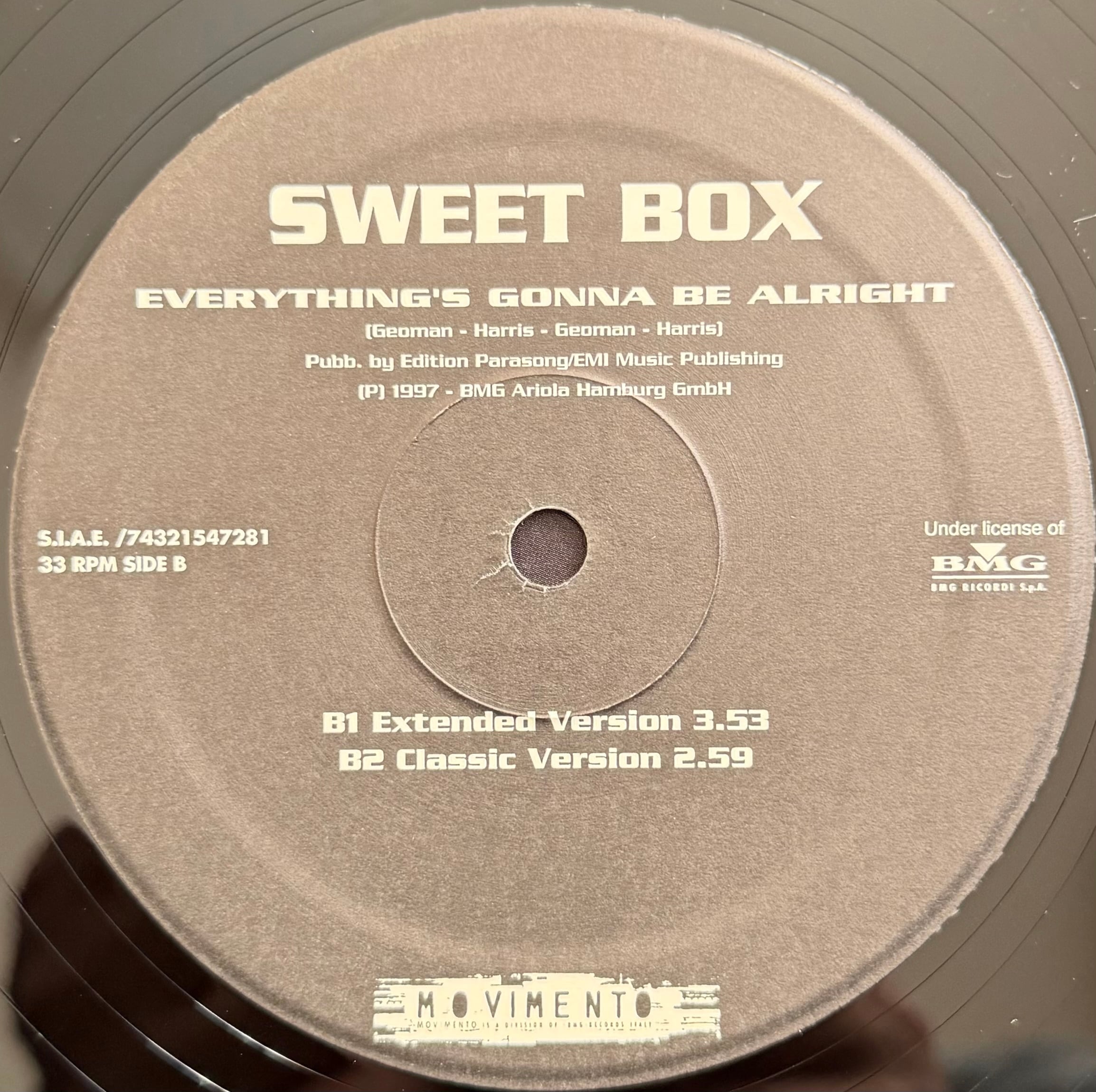 Sweetboxの大ヒット曲を収録した12インチ。バッハ「G線上のアリア」を大胆に引用したクラシカルなフレーズと、当時のポップ・ラップ/R&Bテイストを融合させたサウンドは、ジャンルを超えて世界的に支持を集めました。