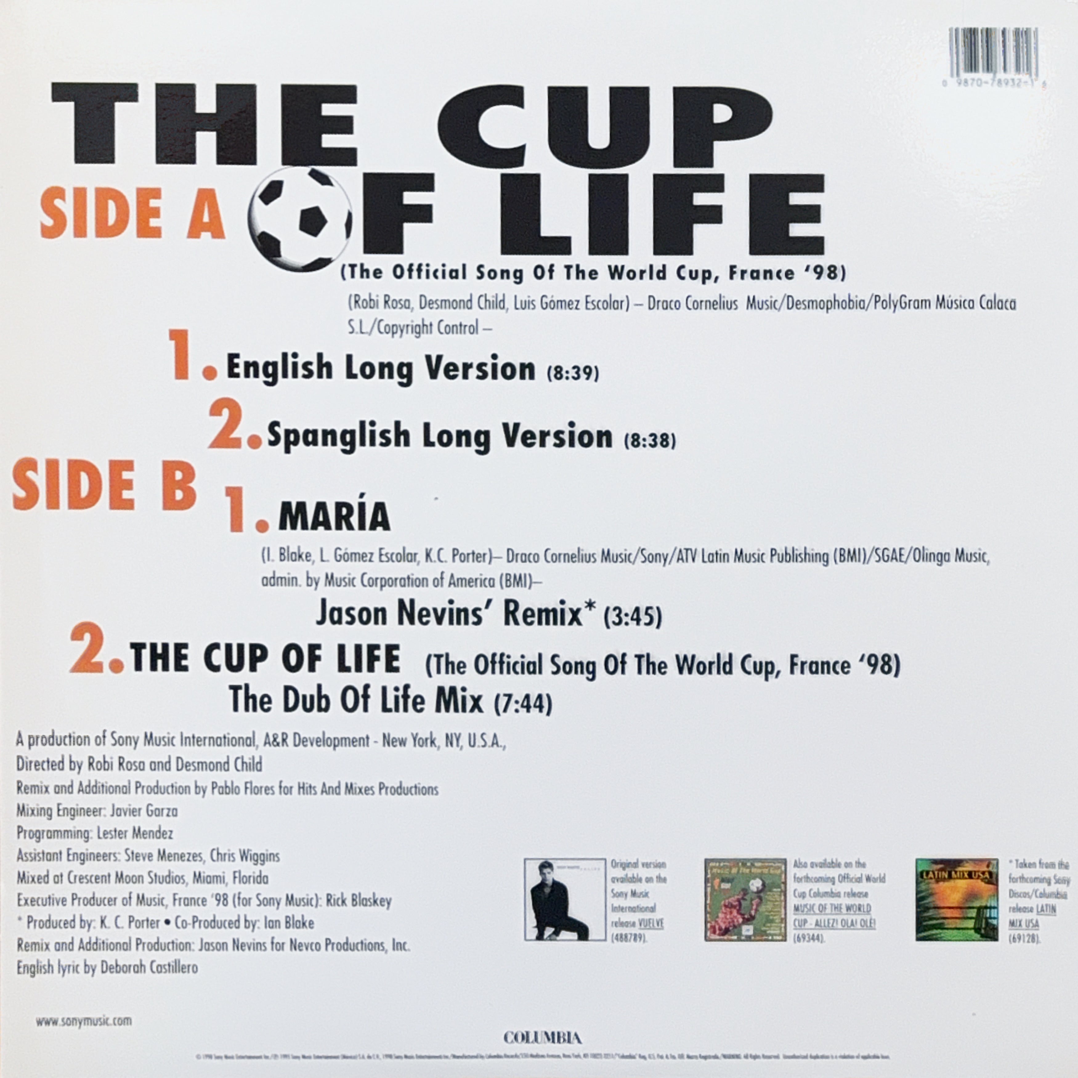 [1998] Ricky Martin – The Cup Of Life (The Official Song Of The World Cup, France ’98) [Columbia]