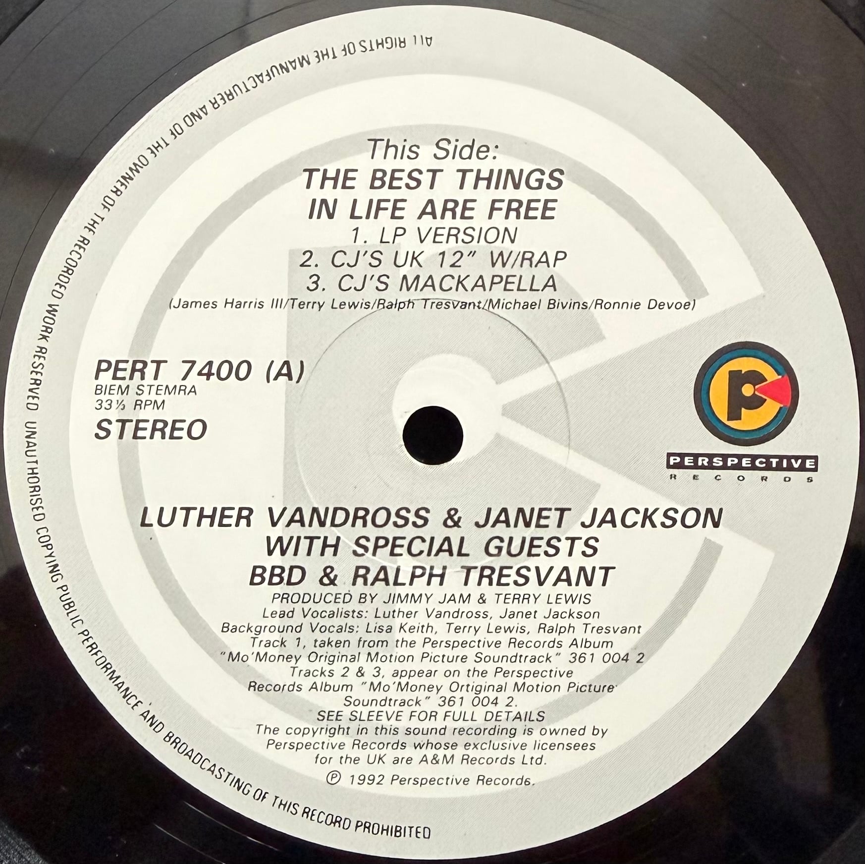 [1992] Luther Vandross & Janet Jackson With Special Guests BBD & Ralph Tresvant – The Best Things In Life Are Free [Perspective Records]