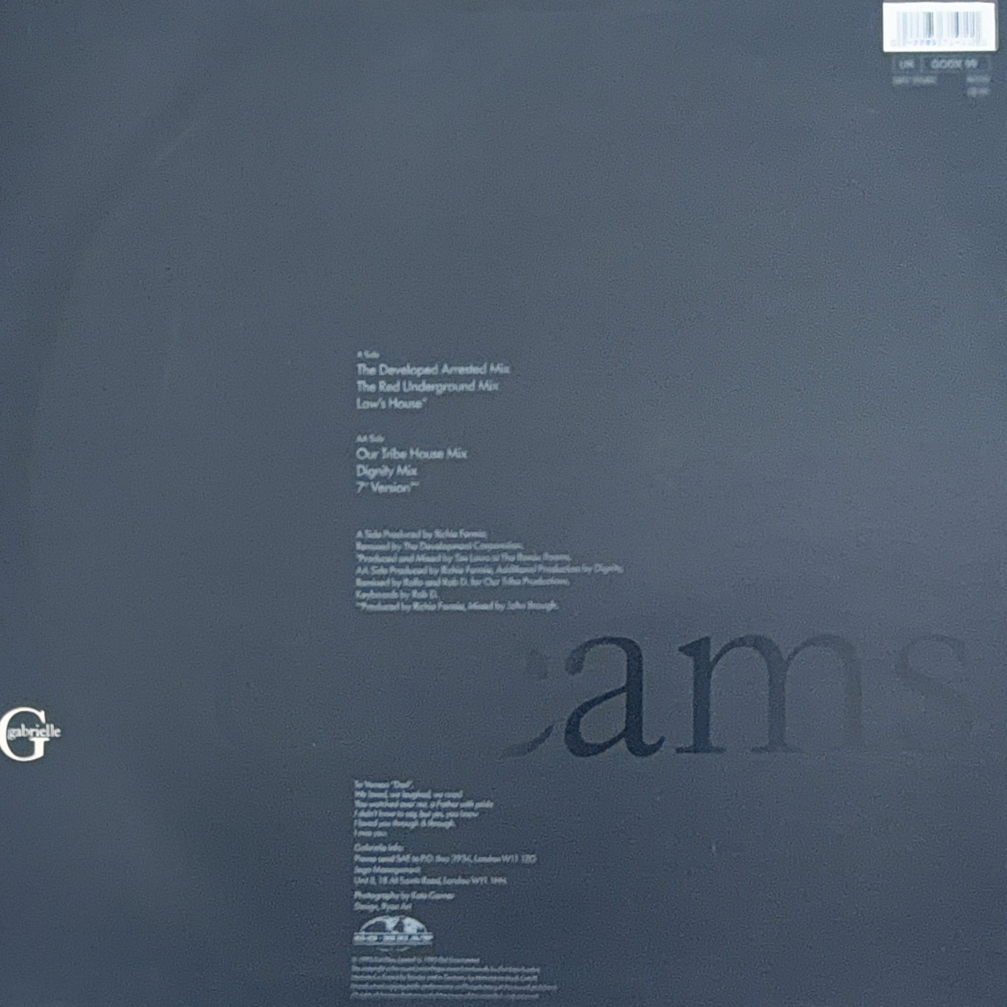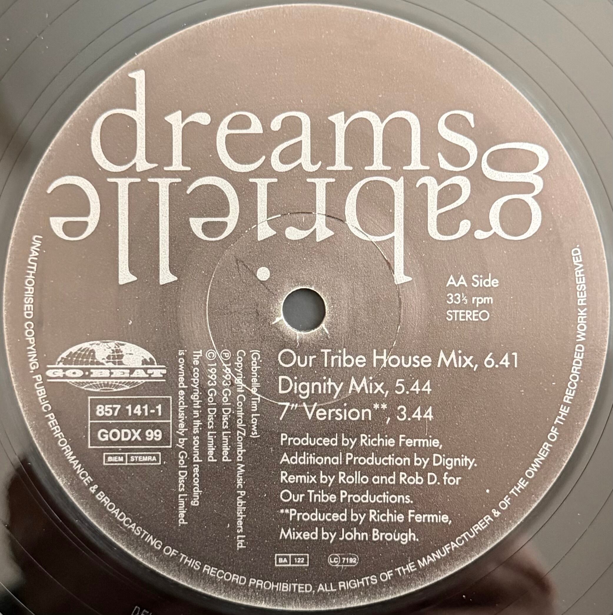 UKソウルシーンを代表するシンガー、Gabrielleのデビュー曲として1993年にリリースされた大ヒット曲「Dreams」の12インチ・リミックス盤。シンプルで温かみのあるメロディと、彼女のソウルフルな歌声が印象的な楽曲で、当時のUKチャートでも大きな成功を収めたクラシックです。