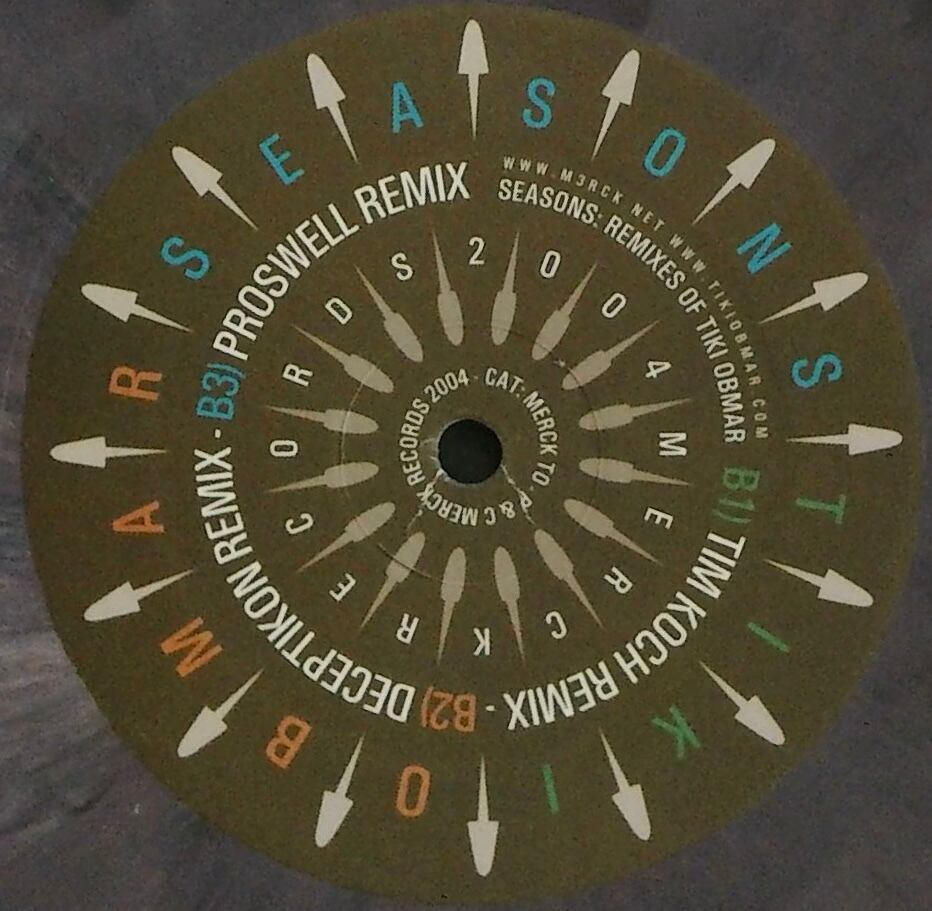 USエレクトロニカ/IDM名門レーベルMerckからリリースされた、Tiki Obmarによるリミックス12インチ。Seasonsを素材に、2000年代中期のIDMシーンで活躍した実力派プロデューサー陣が多彩な解釈を加えた好企画盤です。繊細なメロディ、粒立った電子音、ブレイクビーツ的アプローチが交錯し、当時のポスト・Warp〜エレクトロニカ文脈を感じさせる内容となっています。