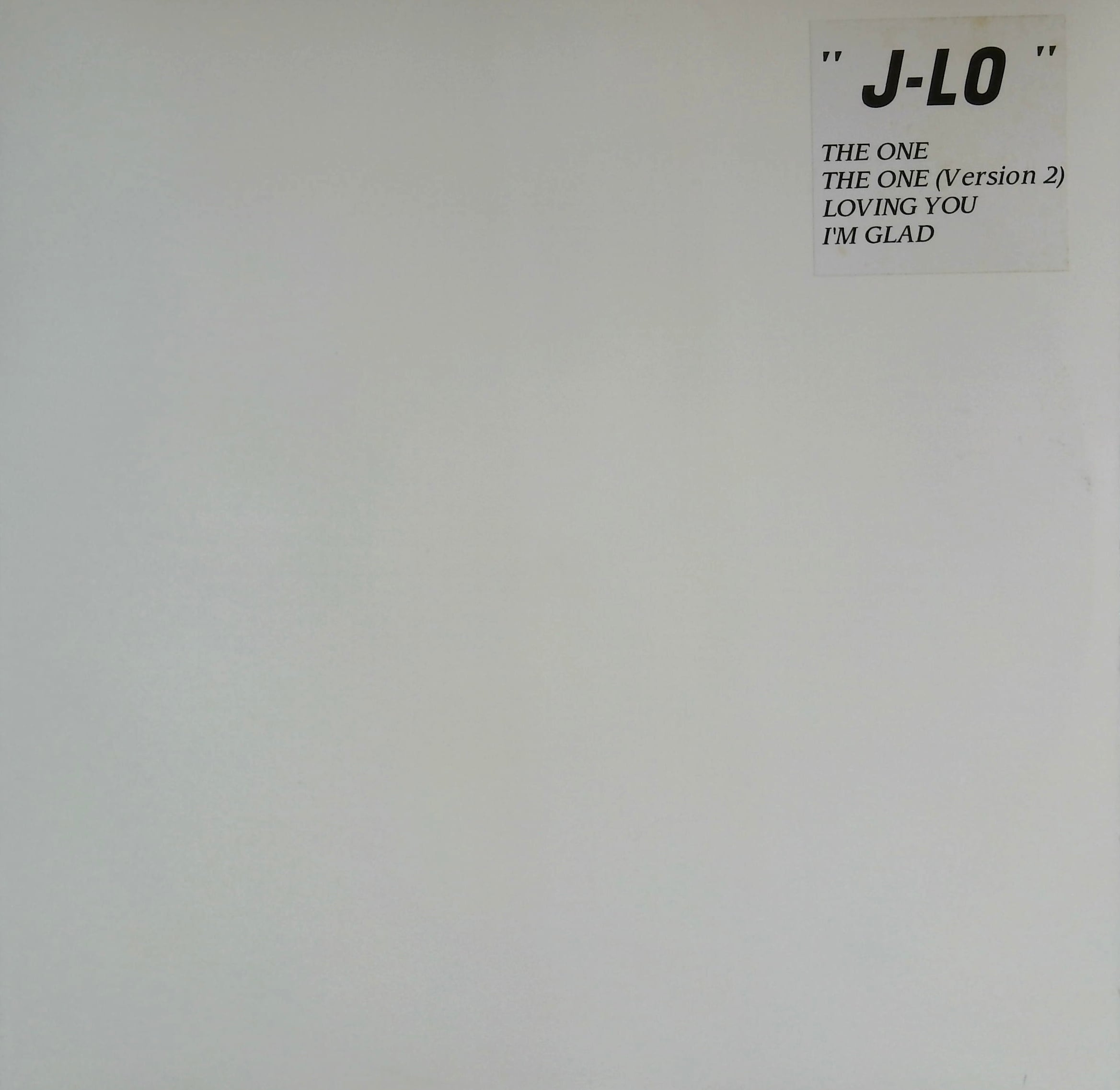 ジェニファー・ロペス(Jennifer Lopez / J-Lo)の楽曲『The One』の非常に珍しい非公式12インチ・アナログ盤で、特に「The One」のアルバムバージョンを含む盤は、イギリスのプロモ盤(W-Pac UK Promo)など非常に限られた形でしか存在せず、このホワイト盤も希少性が高いとされています。